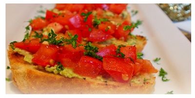 Olivenöl auf mittlerer Stufe erhitzen, die frischen Kräuter, Rosmarin und Thymian in das heisse Öl geben. Die Baguettescheiben von beiden Seiten darin knusprig rösten. Die Avocadocreme auf die gerösteten Brotscheiben auftragen, die Tomaten auflegen und mit viel frischer Petersilie dekoriern.